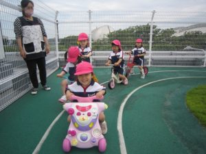 今日は三輪車を使って遊んだり広場をたくさん走り回って遊びましたよ!