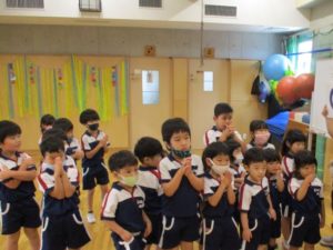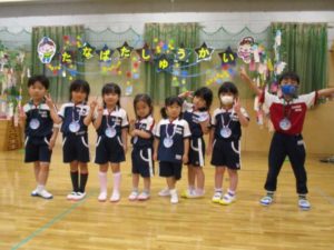 B組さんがお兄さんお姉さんになってC組さんと手をつないで参加しました。