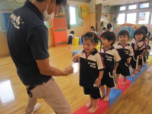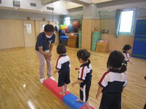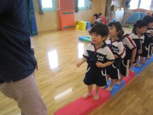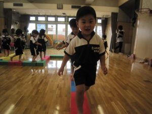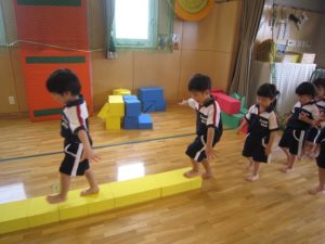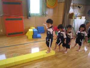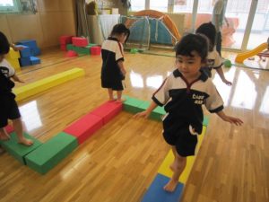 子ども達は必死に両手を広げてバランスをとりながら渡り切っていました。