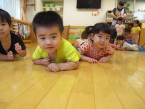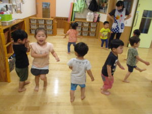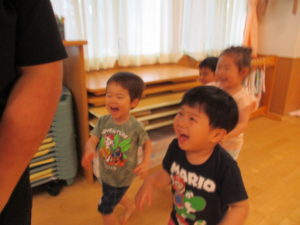 保育士が誘導しなくても、音楽が鳴るとすぐに曲に合わせて身体を動かす子ども達!
