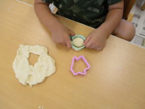 小麦粉粘土では、『ちぎる』『伸ばす』だけでなく型抜きにも挑戦しました。