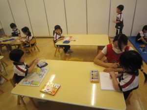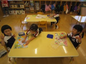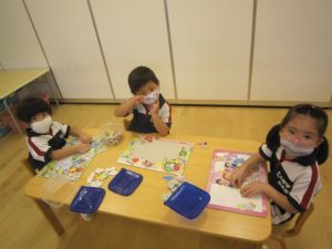 自分の好きな色を使って塗っている子の姿も見られました。