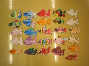 しましま模様の金魚もいたりとそれぞれとても上手に仕上がりましたよ♩