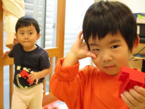 「え?これだよー!」「みて!これつくったの!」「うん!なにつくってるのー!」と…。