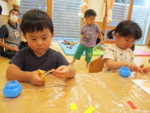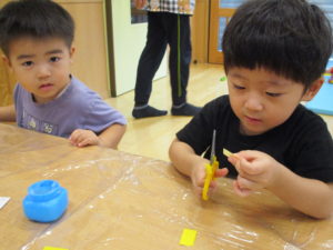 ゆっくりとハサミを動かす練習をしてから制作を始めました。