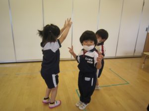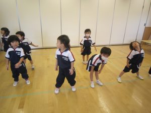振りも覚えてきて、大きく手を回したり、音に合わせて足を曲げたりと、