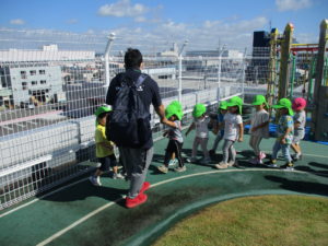 友達と手を繋いで整列を行う際に、あっちへ行く子、こっちへ行く子がたくさん見られるかと思っていましたが、みんな保育士の声掛けや誘導をよく聞いてくれていて、スムーズに並ぶことが出来ていました。