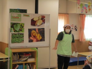 さつまいもの種類や栄養分など給食室の先生に聞き、一緒に参加してもらいました。