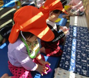 気持ちの良い日差しの中、テラスでおままごとを楽しむぽかぽかさん。
