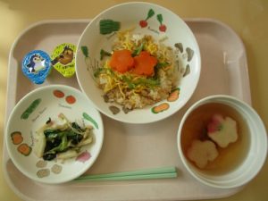 今日の給食は、七五三メニュー。