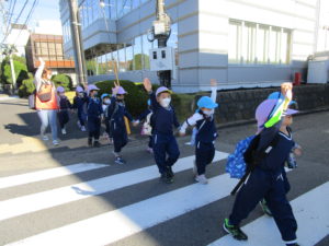 行きの道中、近隣の方にあいさつをしながら、楽しく歩いていました。