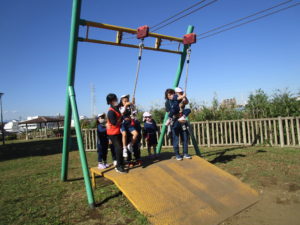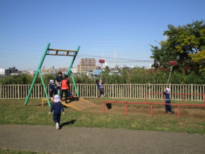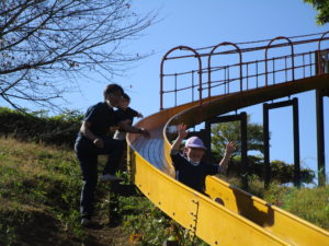 昼食の後には、公園の遊具や広場で思いっきり遊びます!ターザンやゆう先生とサッカーをしたり、カーボンスライダーをして楽しく遊びました!