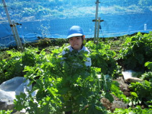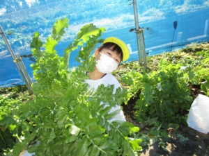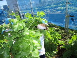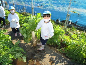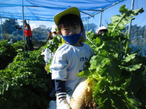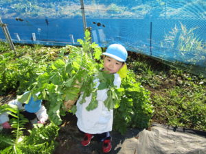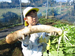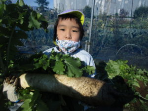 ▼4歳さんが隠れてしまいそうなほどの大きい大根。