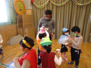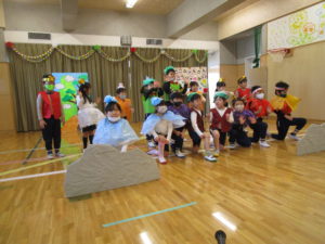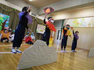 生活発表会の劇『スーパーモンキーゴクウ!』を披露することを伝えていたのでとても楽しみにしており、お部屋で練習するほど!