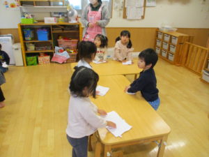 「今年最後の保育園、また来年」子ども達は首をかしげながら「さいごだねー」「おやすみいっぱいなの?」と保育士の話に返事をしていましたが、きらきらさんで過ごす時間も残り3か月。いつも年末を迎えると「え!?あと3か月か!」と気付かされます。子ども達は今年も元気いっぱい健やかに成長してくれました。来年はどのような姿を見せてくれるのか今から楽しみです!