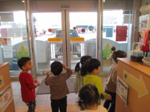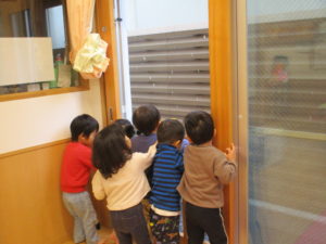 「もっとみたい!」という子ども達のリクエストに応えて、外に出ることはできなかったのですが、玄関まで来て降り続く雪を何度も眺めた子ども達でした!