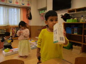 今年も1ヵ月が経ち、新しく増えた持ち物の準備も少しずつ保育士の援助を必要とすることなく行うことが出来るようになってきました。