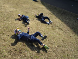 ※子ども達と一緒にはたきましたが、体操服に芝や砂埃がついているかと思います。お手数おかけしますが、洗濯をお願い致します。