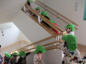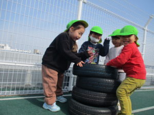 今日は屋上で遊びました!進級に向けて足を交互に出して階段の昇り降りが出来る様に取り組んでいるきらきらさん。
