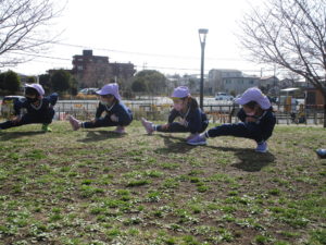 怪我をしないように準備体操☆