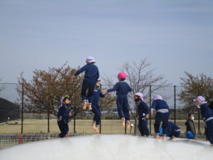 卒園式翌日から新しいA組さんの為にホールで過ごしています!広い環境に伸び伸びしています(笑)