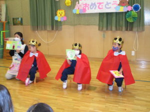 犬のおまわりさんの歌をうたった後、最後に記念撮影を行って4月のお誕生日会はお終いしました。