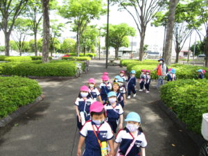 4歳児はお散歩に行くのは2回目。春の草花などを見つけながら歩きました。