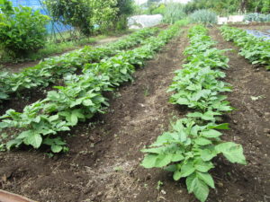 じゃがいもの苗の周りには雑草がたくさん…。子どもたちに代わって