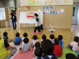 乳児クラス部門では、大きなクマさんが登場!「虫歯になってしまうと…」と話すと「えーっ!!」「キャーッ!!」と大興奮!