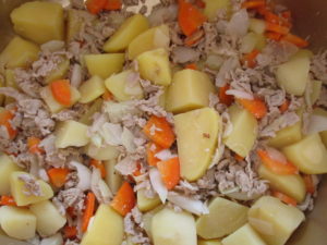 ▼にんじんと豚肉を入れて、順番に炒めます。