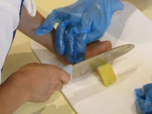 ▼包丁を使うときは「猫の手」でね。
