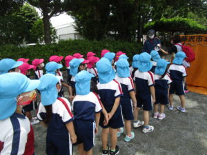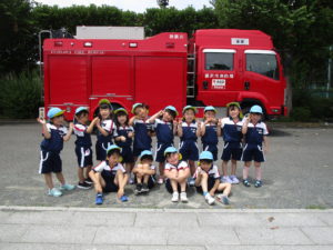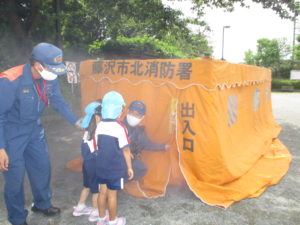 今日は6月の避難訓練。藤沢北消防遠藤出張所の消防士の方にご来所いただき、訓練指導と煙体験を行っていただきました。