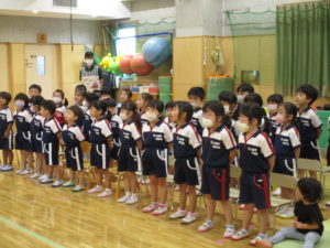▼最初に園歌を歌います。お背中伸びててカッコイイ!