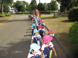 帰り道では ”セミの抜け殻探し” をしました。夢中で探している時は気にならないのに、「は~い並んで~。帰るよー」と声を掛けて並んだとたん、「先生~、蚊に刺されて足がかゆ~い!!」さっきまで何も言ってなかったのに(^_^;)