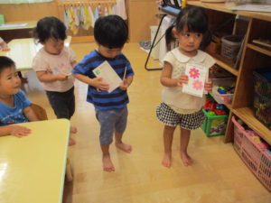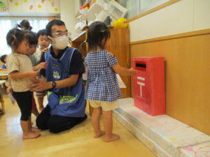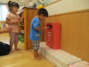 9/14(水)【きらきら】敬老の日ハガキ投函 2022/09/14 久しぶりのブログです。お盆のあと、クラス内で手足口病が流行。しかし9月に入り、みんな元気に。またにぎやか元気なきらきらさんが戻ってきました! 今日は、敬老の日のハガキを投函しました。 おじいちゃんおばあちゃん ハガキが届くのを待っててね ちゃんと入ったかな? きらきら組 松下