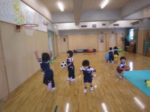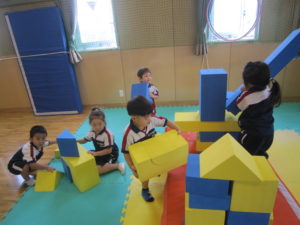 朝、夕と気温が下がる日が続いていて、季節が急に変わったなぁと感じております。子ども達も長ズボンを着用して登園する子が見られるようになり、保育者や友達に「ようふくみてー!」と教えてくれています。今日はホールで運動遊びをした後、久しぶりにソフト積み木やボールを出して自由に身体を動かしながら遊びました。汗を流すと窓際に行って「あーすずしいぃぃ…」冷たい風を浴びて、遊びに戻る子ども達でした。