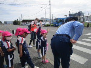 ▼横断歩道の前に行ったら『道路の前では気を付けピッ!』の合言葉。渡っている時も左右の確認忘れずに。
