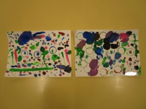 ★キャップスタンプ遊び★・・キャップスタンプをもとに絵を描いたり、指スタンプをしました。