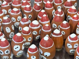 どんぐりサンタ。全員表情が違います。ビビっとくるサンタさんをぜひ探してみてくださいね。