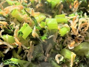 ごま油、じゃこ、だしのもと、しょうゆ、ごまがあれば簡単にできますので、葉っぱをポイっとせず、楽しく美味しく召し上がっていただけますと幸いです。