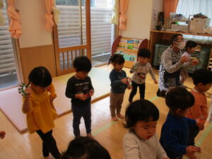 寒い雨で始まった一日。縮こまった身体を温めるため、「にんじんチャチャチャ」というかわいいダンスを踊りました。ぜひおうちでも踊ってみてくださいね。