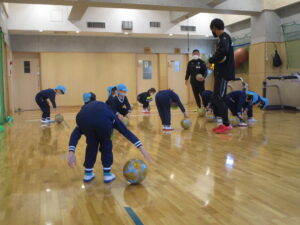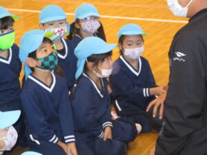 ▼真剣にコーチの話を聞くA組さん