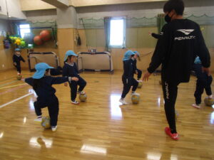 ▼ミニゲームではコーチが「ちゃんとサッカーしてる!すごい!」と褒めていました