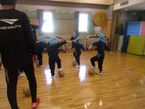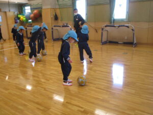 今日で二回目のベルマーレサッカーです。A組さんは数日前からゆう先生と特訓してきました。「よろしくお願いします」と始まった練習。ワールドカップの会話も聞こえていました。ミニゲームでは、ボールを力強く蹴る音や、FW・DF・ゴールを守る人(ゴールキーパー?)など体系を整えてくるチームなど、特訓の成果が出ていました。