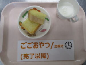 ※本日のメニューが都合により 「鮭フライ」→「鮭のごま焼き」 「ミルクフレンチトースト」→「シュガートースト」 に変更になりました。
