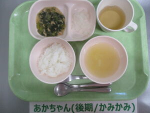 【後期食】五倍粥、ツナと小松菜の煮物、大根煮、白菜の味噌汁