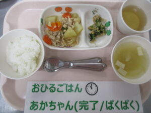 【完了食】軟飯、鶏肉じゃが、納豆和え、高野豆腐の味噌汁