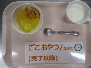 【後期食以降】牛乳、渦巻きパイ,甘夏のゼリー