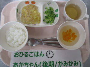 【後期食】五倍粥、ツナとキャベツの煮物、きゅうり煮、人参スープ