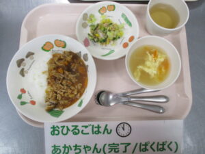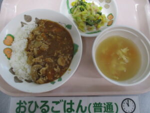 ハヤシライス、キャベツのツナサラダ、卵スープ